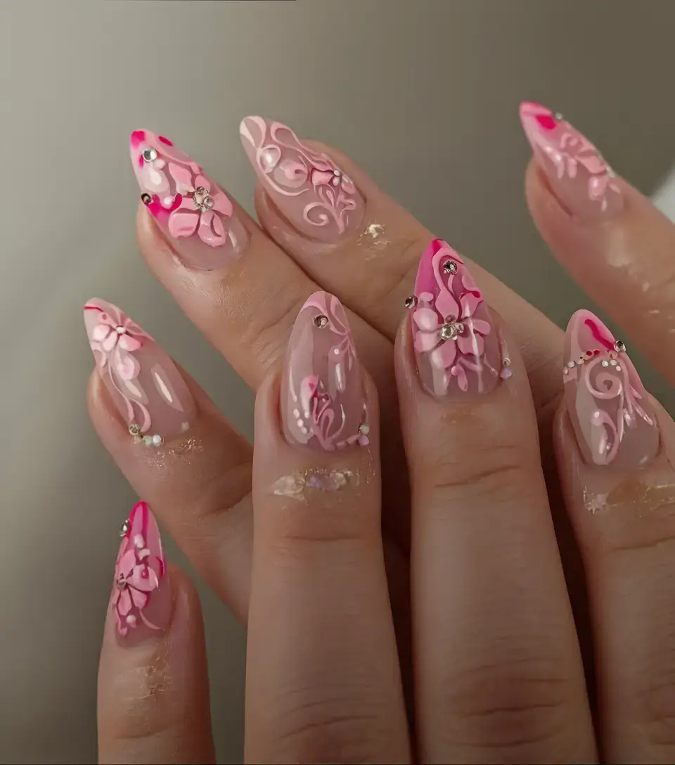 We need to acknowledge a truth between us. Tropical nails become addictive after which regular mani-pedis lose their appeal. The combination of sunshine and seafoam with sparkles on your fingertips creates an addictive effect that beach hawaii resort visitors experience even if you stay at home. Ready for the next wave of ideas? I’ve got you. Pink Hibiscus Fantasy The pink-on-pink 3D sculpting design creates a floral fantasy that seems to have appeared directly from a beach sunset walk — this romantic design is simply stunning. The base nail features almond-shaped tips and a transparent nude color that becomes enchanting…