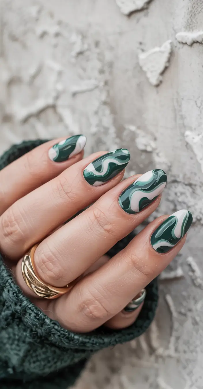 The smell of pine, warm sweaters, and warm jazz with shinning lights and candles, it is time of the year when even our nails have to shine. Yet imagine I could explain to you that the manicure trend this year will go beyond glitter and red polish? It is all about grace in green, contemporary, minimal, and very festive. Wanna be part of the next wave of Chic Tree Nail Designs December 2025? Let’s unwrap them together. Whispering Pines on Winter White Slim green fir nails that are soft white, it such a look needs to be admired as one…