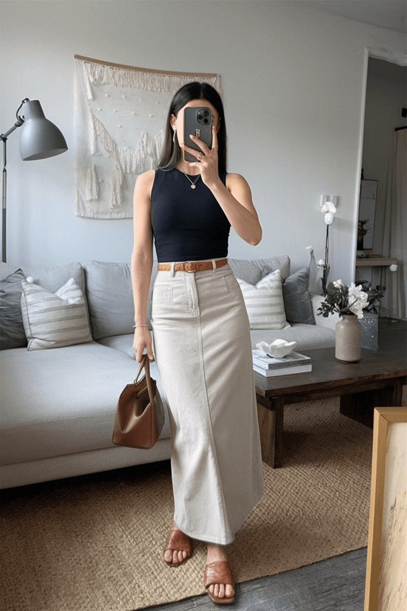 Searching for elegant yet easy work outfit suggestions for the summer of 2025? Summer’s heat is no match for these chic looks: warm weather appropriate, tailored cut, supple and flowy materials, and smart-ready for the workplace. Effortless Neutrals with a Modern Twist Let’s dive into women’s office wear suggestions for summer 2025. This look, which combines effortless beauty with a timeless elegance, is sure to stand out. The form-fitting black sleeveless top is complemented wonderfully by a stone-colored, high-rise denim maxi skirt. While the structure of the outfit offers polish, the earthy tone brown accessories encapsulate the look with…